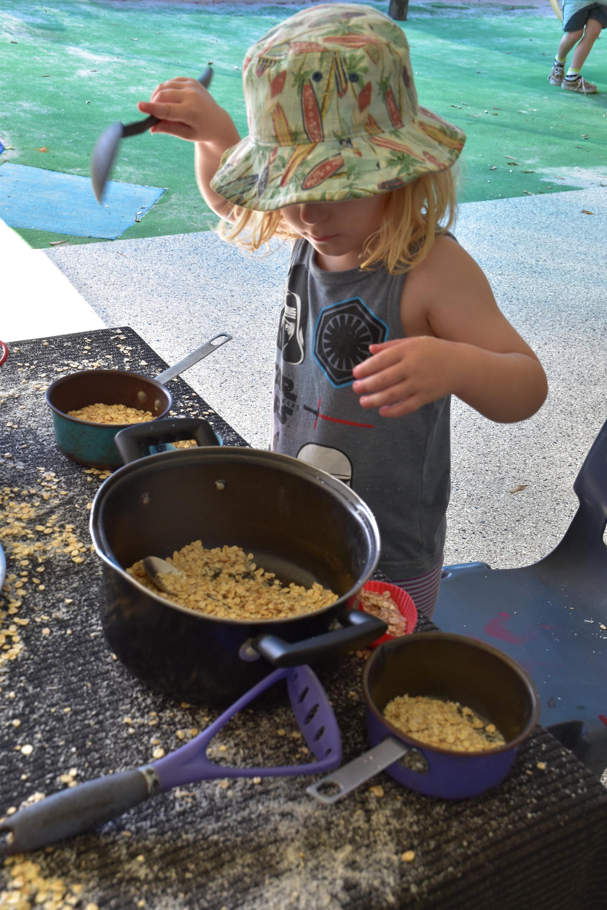 Spring has sprung and we are loving the warmer weather and lots of fabulous outdoor play. The children have been making good use of our water tanks, collecting water to make lots of muddy concoctions in the sand pit, as well as helping to water our garden beds. Playing outdoors not only promotes children’s physical, social/emotional and cognitive development, it also offer opportunities for open-ended imaginative play and a variety of sensory experiences. These opportunities allow children to strengthen their sense of agency and gain understandings about the natural world.